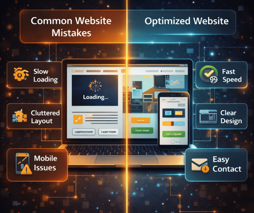 One of the most common mistakes is hiding contact information or making it difficult to find. If visitors cannot quickly locate your phone number, contact form, or address, many will simply move on to another business.