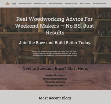 Content-focused website built around woodworking and DIY topics using blog structure and SEO content strategies.