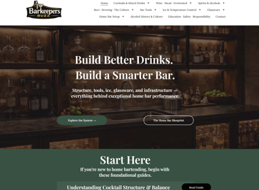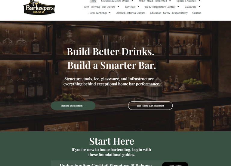 Affiliate marketing website built around bar tools, drink culture, and product reviews with SEO-driven blog content.