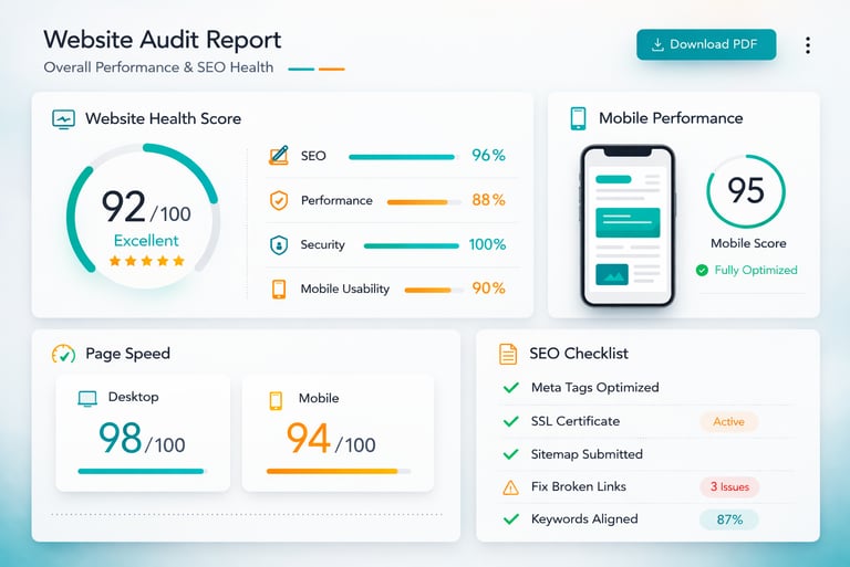 Get a quick review of your website’s design, speed, and usability with practical suggestions to improve performance and conversions.
