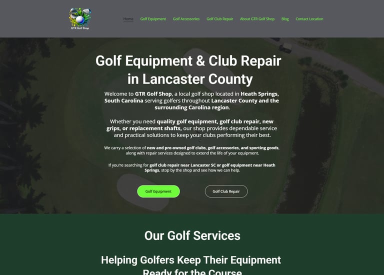 Website built for a local golf shop to showcase services, improve online visibility, and help customers easily find store information.